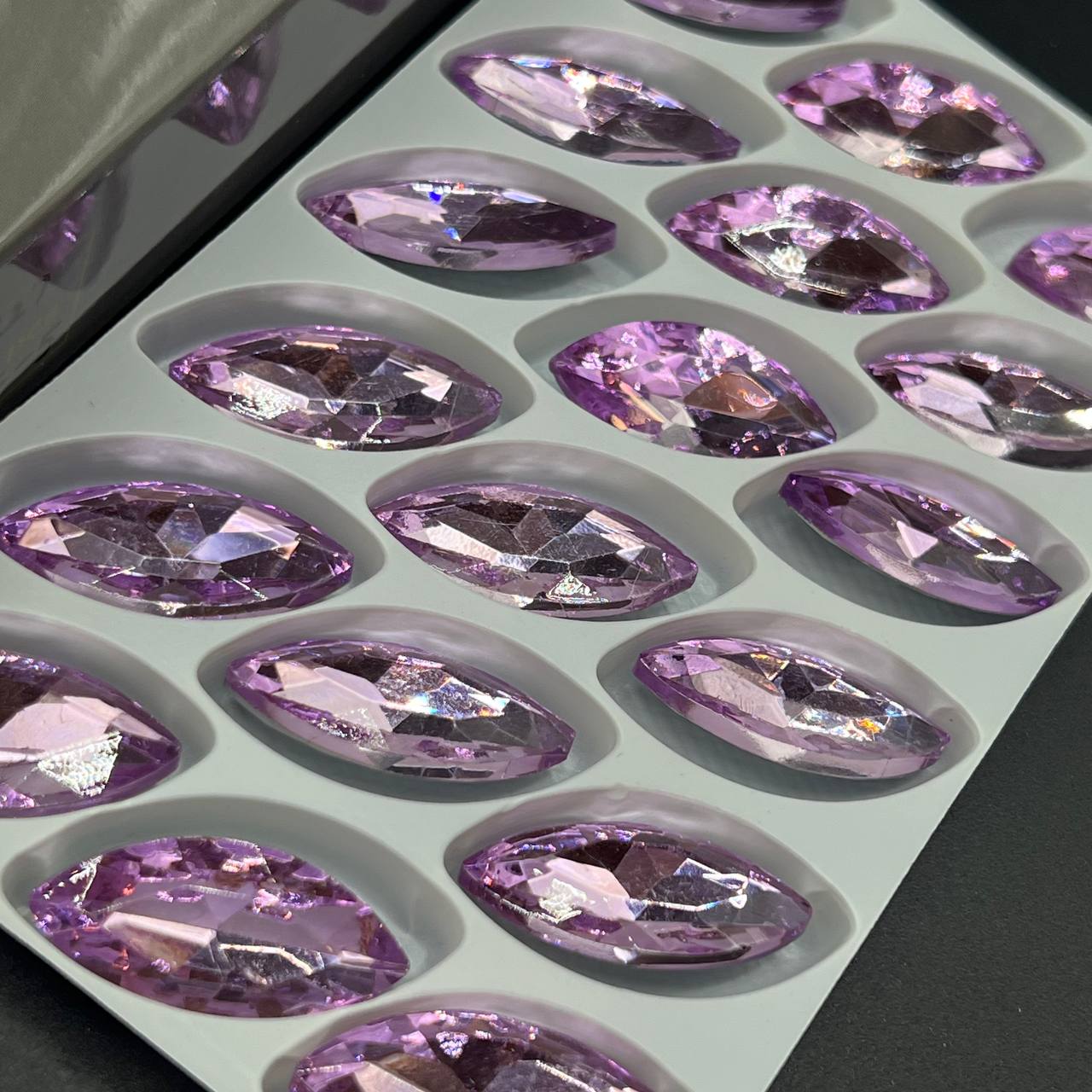 نگین مارکیز رنگ یاسی یکی از محبوب‌ترین و شیک‌ترین نگین‌های تزئینی است که در طراحی بدلیجات، لباس و پروژه‌های هنری استفاده می‌شود. این نگین‌ها با برش خاص مارکیز، جلوه‌ای درخشان و زیبا به کارهای شما می‌دهند و باعث می‌شوند طراحی‌ها جذاب‌تر و حرفه‌ای‌تر به نظر برسند.